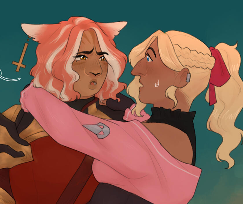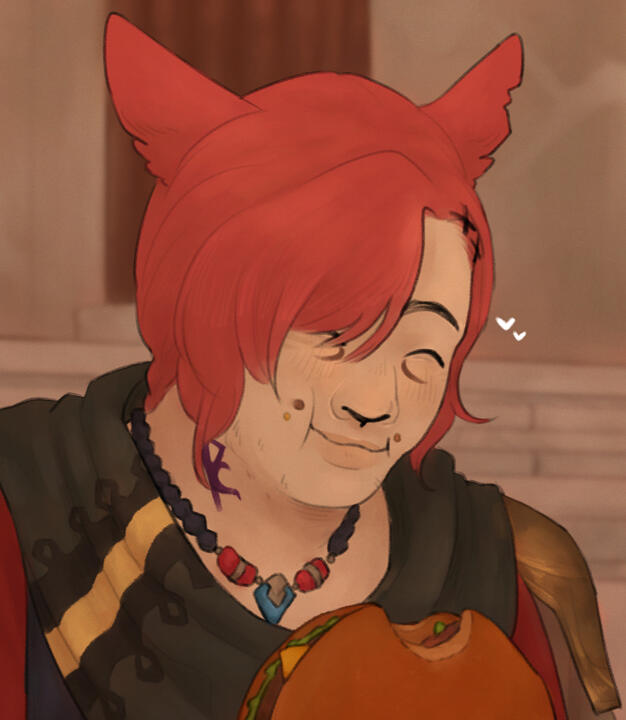 Minfilia is first to develop romantic feelings, at least consciously. She finds that A'vaya has been key to fulfilling her dream of peace, and beyond that, someone who understands her deeply. She hides these feelings, certain A'vaya would not reciprocate along with believing her desire for intimacy was inappropriate. Unbeknownst to her and also A'vaya, the warrior is also in love. She's never been in a relationship, let alone in love, so it's all very new and unclear to her. For Minfilia to tear down the walls she put up out of false necessity and reach out to her, nobody has done that for her. They need each other, as well— A'vaya needs someone to guide her blade, her heart, and Minfilia needs someone she can rely on when all else fails.